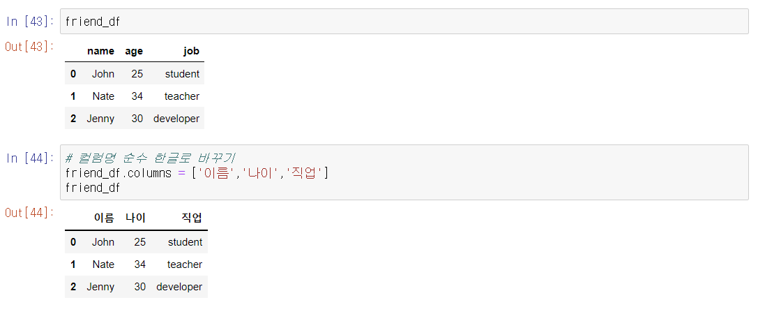 - 수정는 해당 dataframe에 적용을 하지 않으면 반영 안됨
