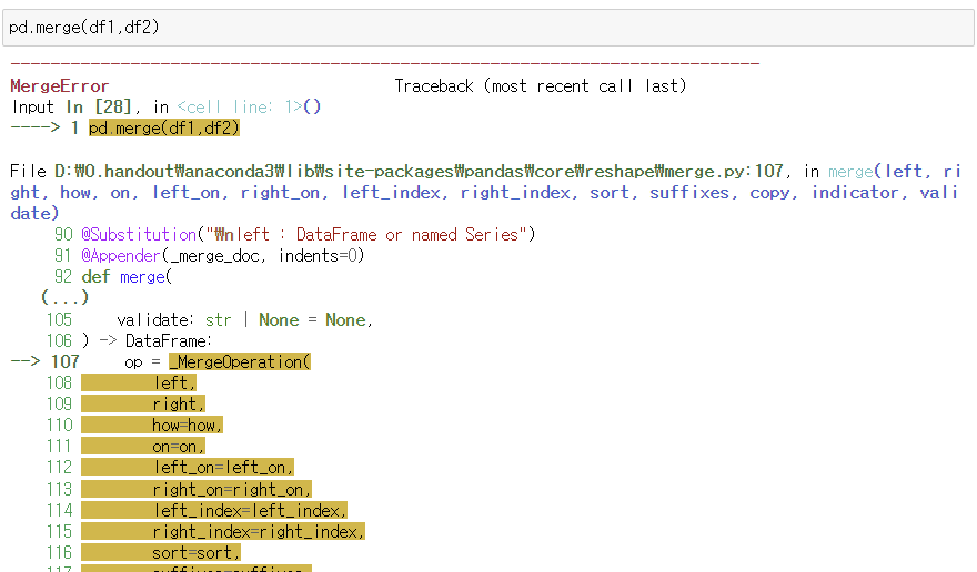 # 기본 방식처럼 했을 시 에러 : ValueError: You are trying to merge on int64 and object columns. If you wish to proceed you should use pd.concat