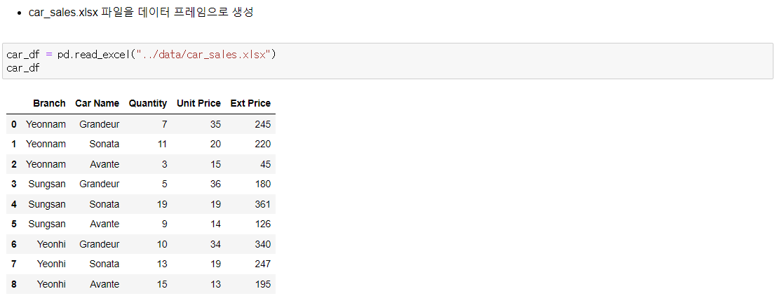 - car_sales.xlsx 파일 데이터 프레임으로 생성