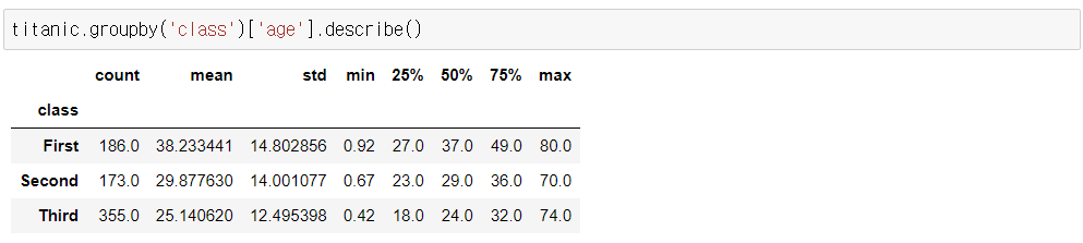 - pclass, class : First가 가장 좋은 등급, Third가 제일 낮은 등급
