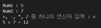 op = input("+, -, *, / 중 하나의 연산자 입력 : ")