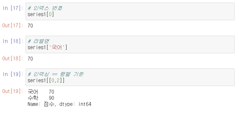 4) 인덱싱 조회(인덱스 번호 or 라벨명)