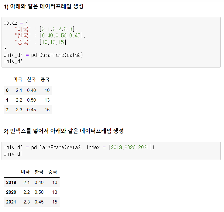 2) 인덱스를 넣어서 아래와 같은 데이터 프레임생성