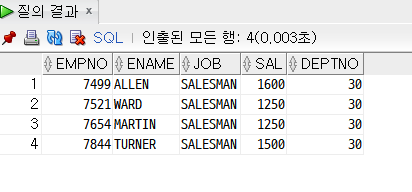 AND job = 'SALESMAN';