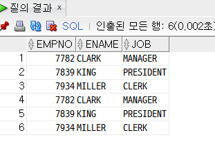 ※ UNION ALL : 중복 제거 안함
