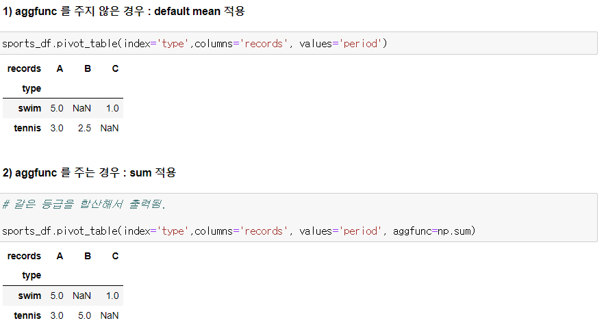 2) aggfunc를 주는 경우 : sum 적용