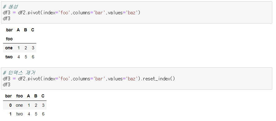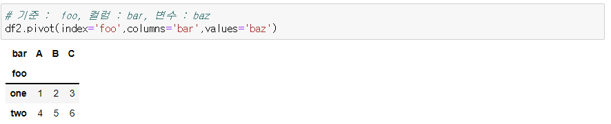- pivot : 형태만 변경