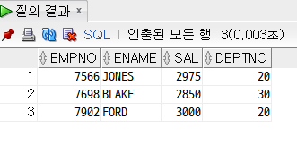 ex) SELECT empno, ename, job FROM emp WHERE deptno = 10