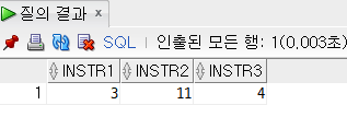 ※ 특정 문자 위치 찾기 : INSTR(문자열 데이터, 위치를 찾으려고 부분문자,시작 위치,시작위치에서 찾으려는 문자 몇번째인지 지정)
