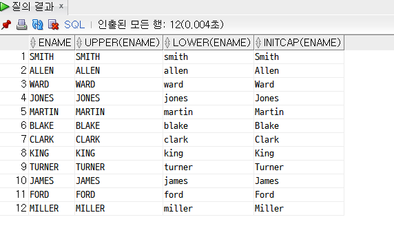 ※ 대소문자 변경 : UPPER(), LOWER(), INITCAP()