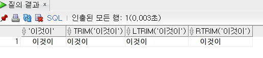 TRIM(' 이것이 '), -- 양쪽 공백 제거