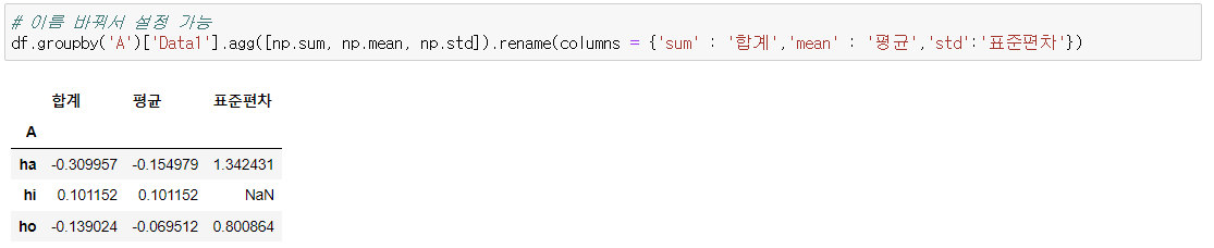 | Python 데이터 분석(주피터노트북) - Pandas(실습-groupby) (0) | 2022.11.06 |