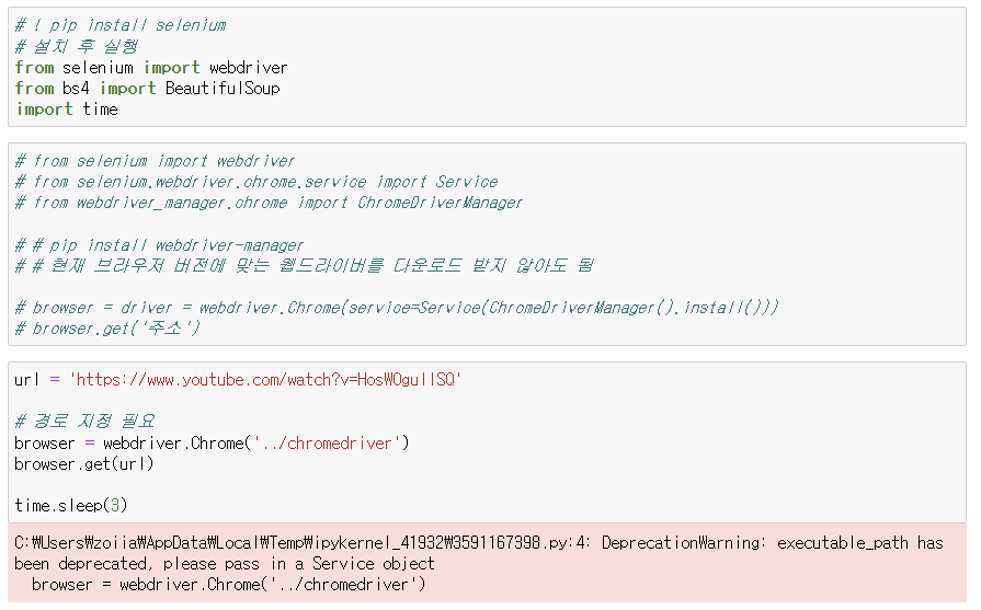 샐레니움 설치 필요 : pip install selenium 설치