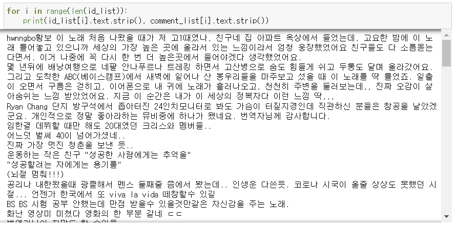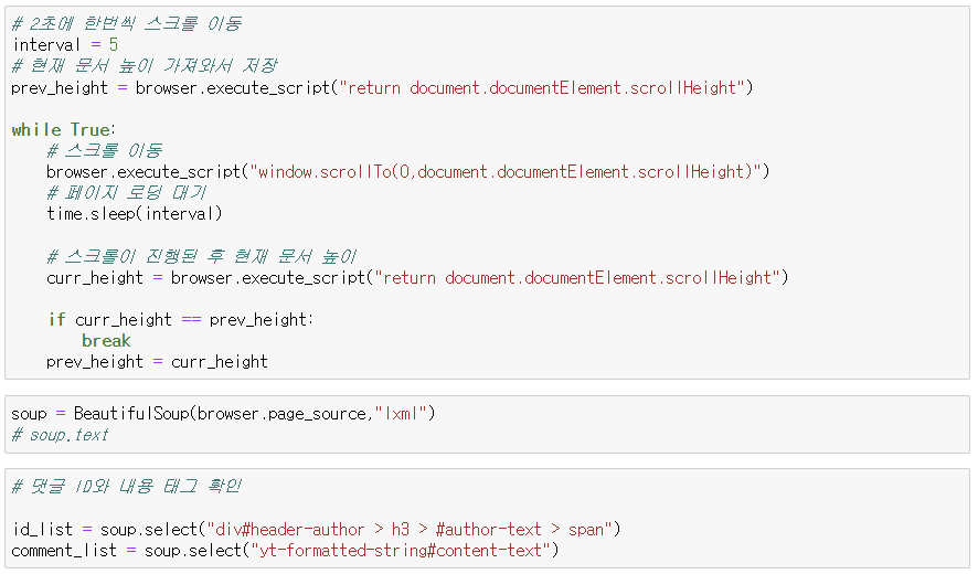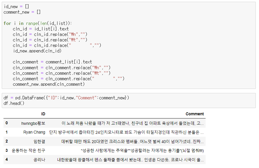 Youtube 댓글 크롤링 후 데이터 프레임 생성