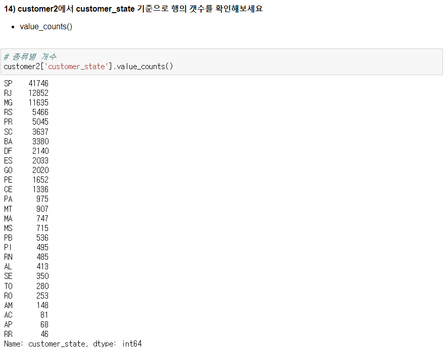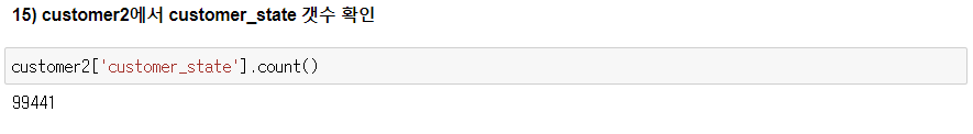 14) customer2에서 customer_state 기준으로 행의 갯수를 확인