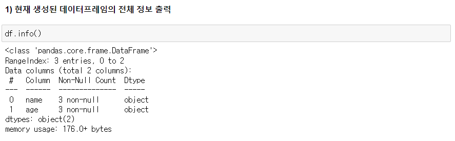 1) 현재 생성된 데이트 프레임의 전체 정보 출력