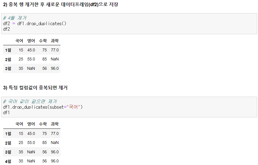 2) 중복 행 제거한 후 새로운 데이터 프레임 (df2)으로 저장