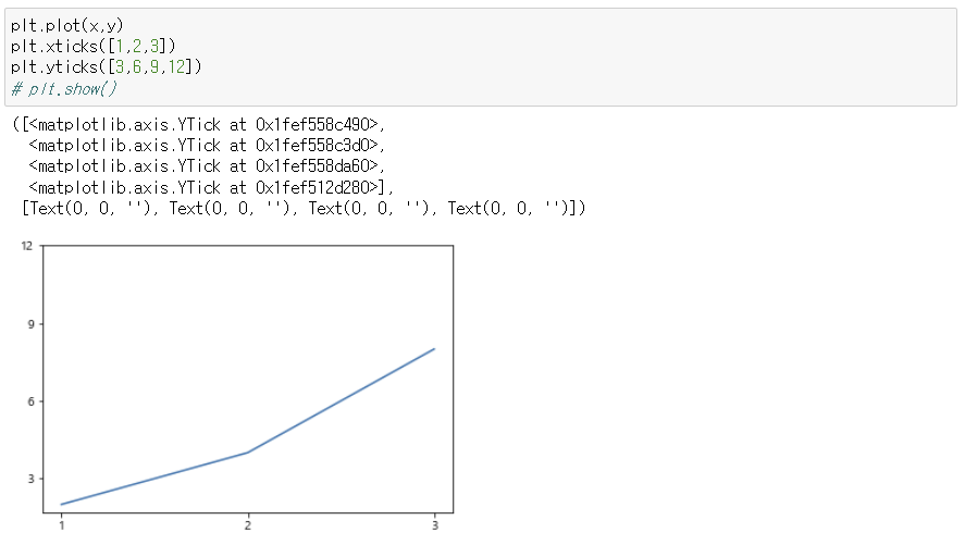 3) 축 눈금 설정 : xticks(), yticks()