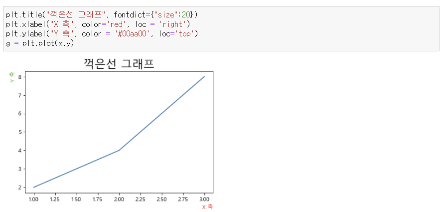 - loc : 축 이름 위치 설정('left', 'center', 'right'), y 축 (top, bottom, center)