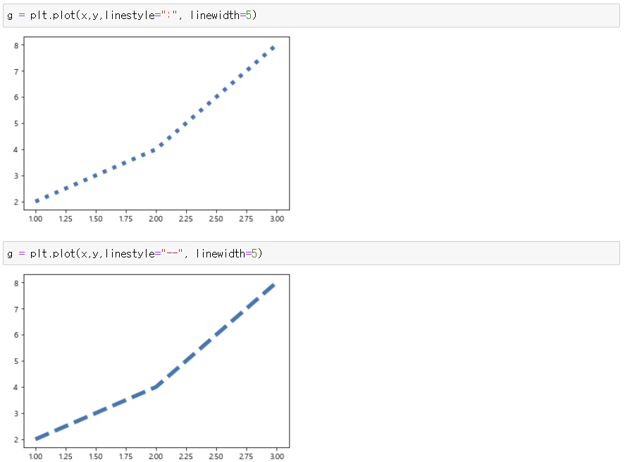 3) 선모양 : linestyle