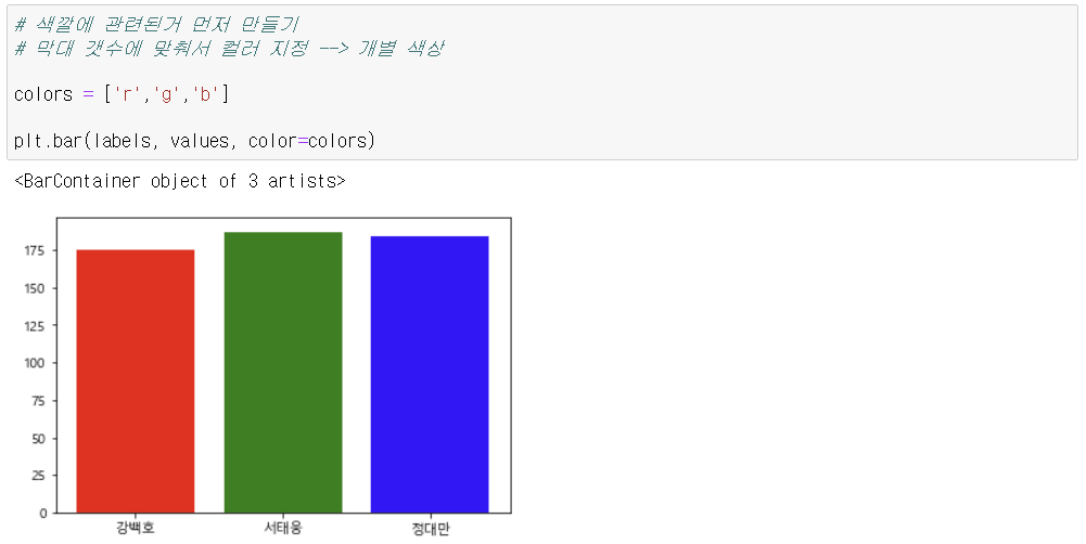 - 막대별 색상 지정 가능