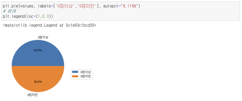 5) 평점이 9점 이상인 영화의 비율을 확인 할 수 있는 원 그래프를 작성 후 세부사항 적용