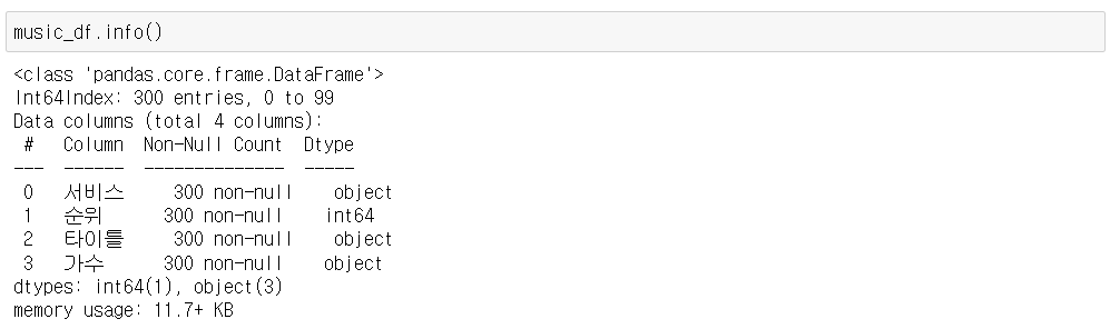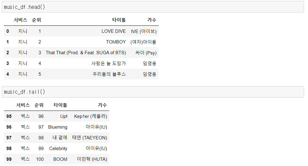 Python 데이터 분석(주피터노트북) - 음악 순위 크롤링 및 데이터 분석 본문