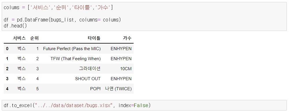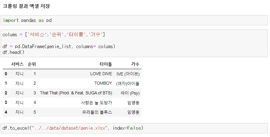 4) 크롤링 결과 확인 및 엑셀 저장