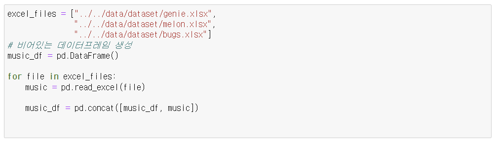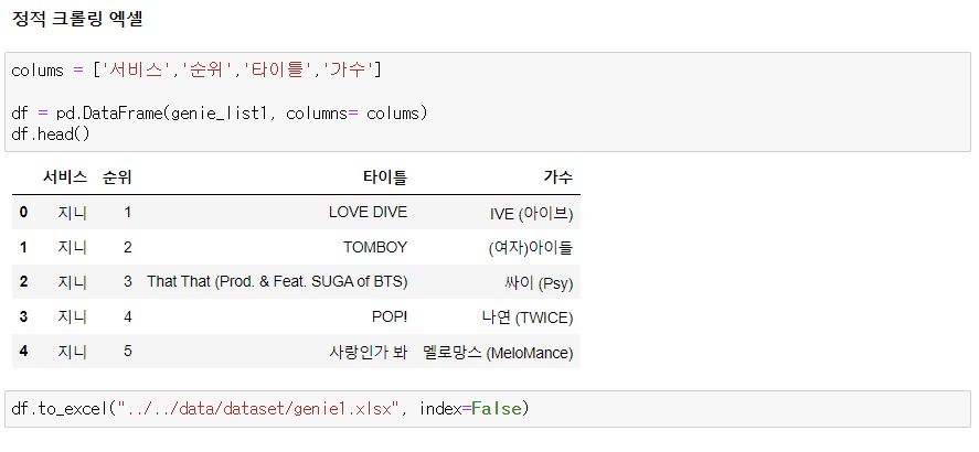 - 각 음악 사이트의 크롤링 정보를 엑셀 저장