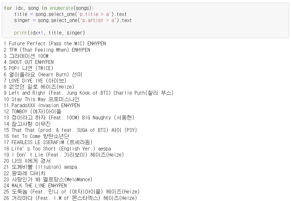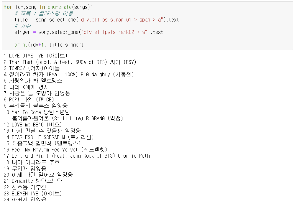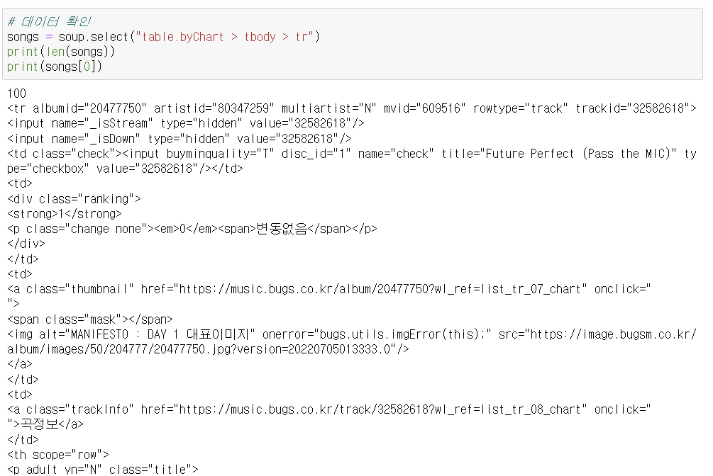 2. 벅스TOP100 음악 정보 가져오기