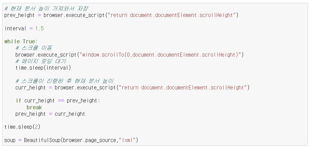 - selenium + soup 사용