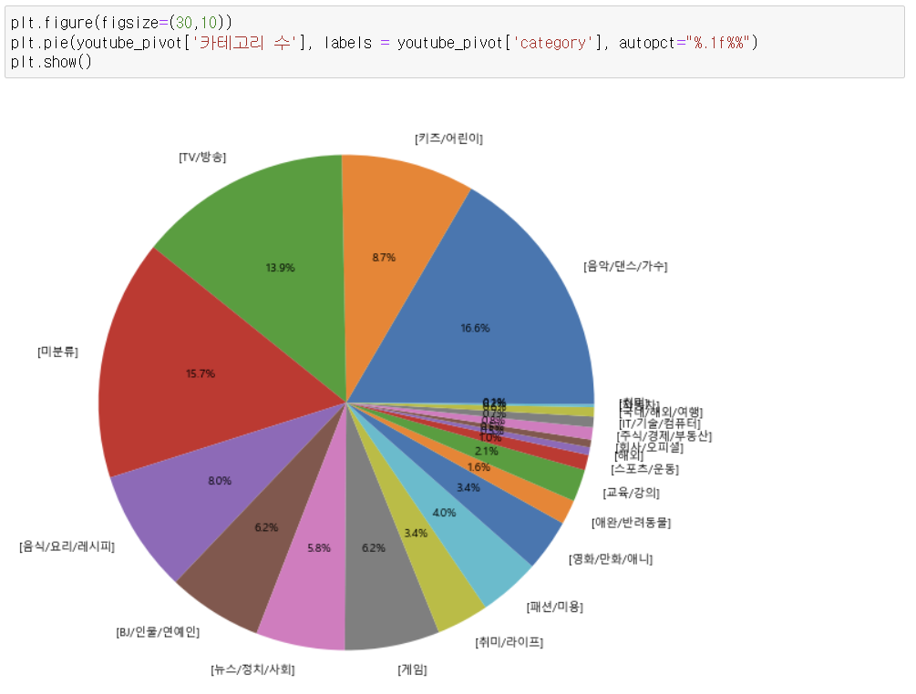 1) pie 차트 - 카테고리별