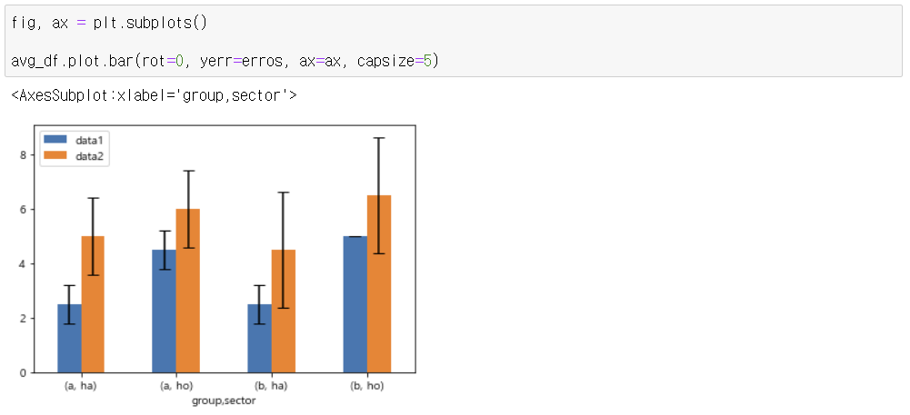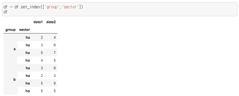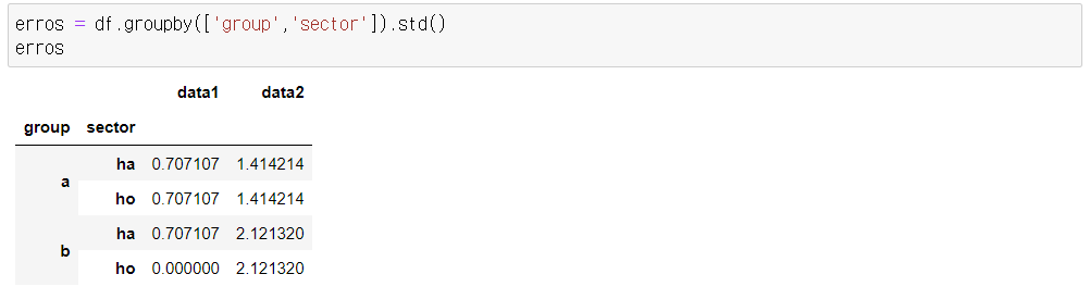 - df.groupby(['group','sector']) 기준으로 표준편차