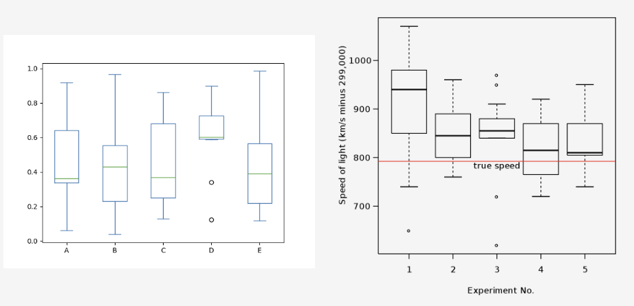 - 제 1사분위 수 (Q1) : 중앙값 기준으로 하위 50% 중의 중앙값, 전체 데이터 중 하위 25%에 해당하는 값