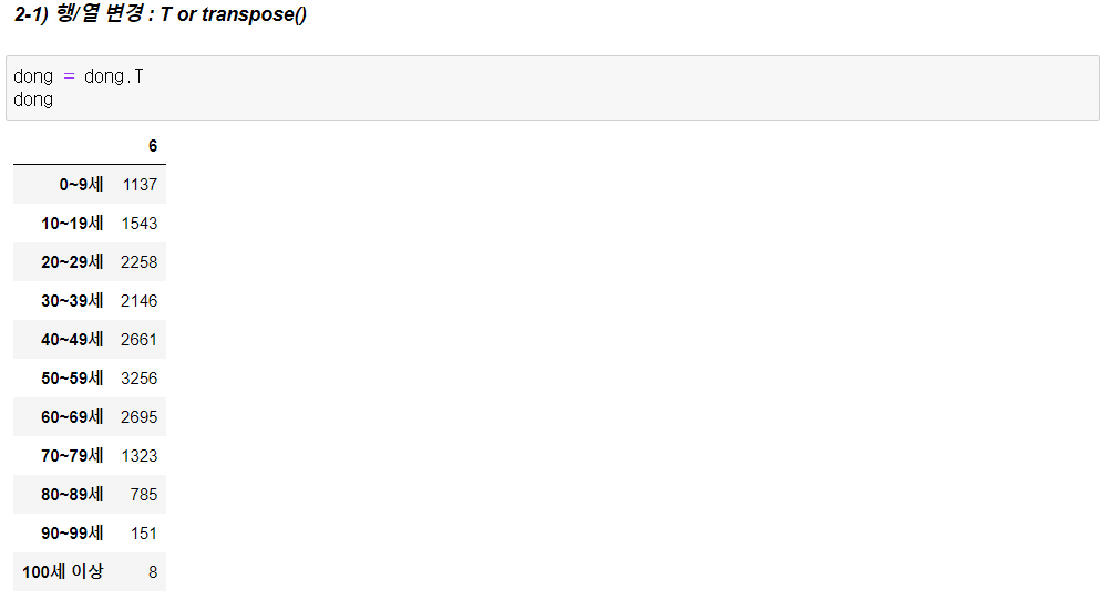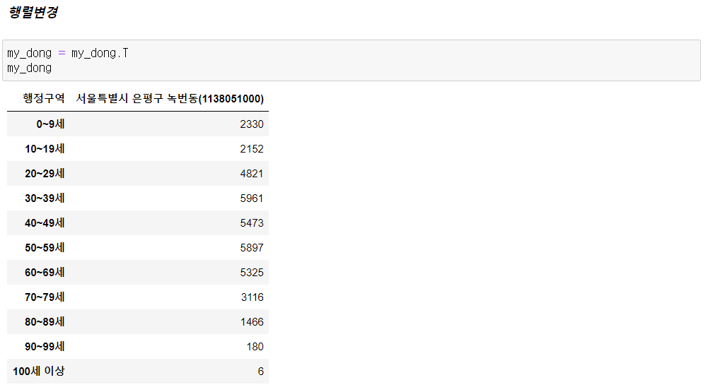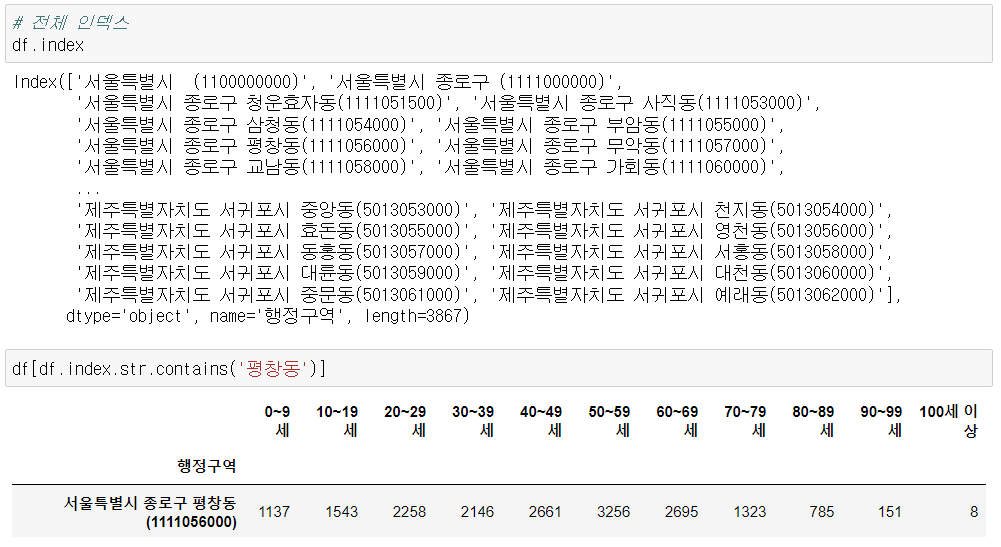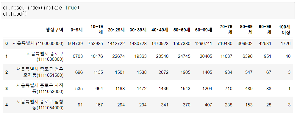 - 행정 구역을 인덱스로 설정