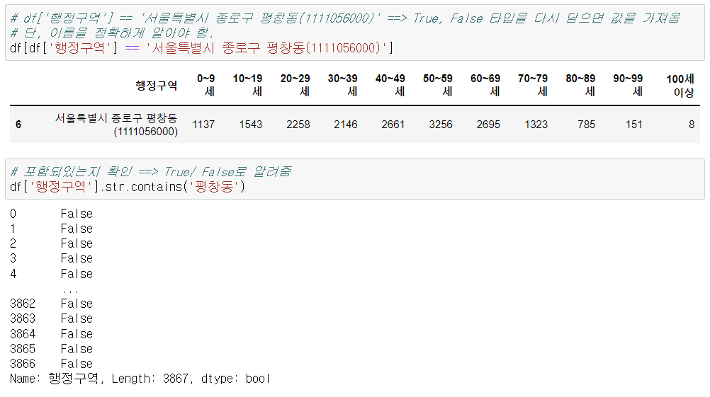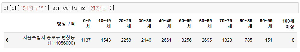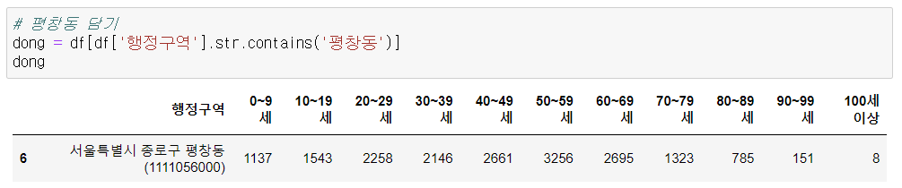 - 2) 평창동 df에서 행정구역 컬럼 제거