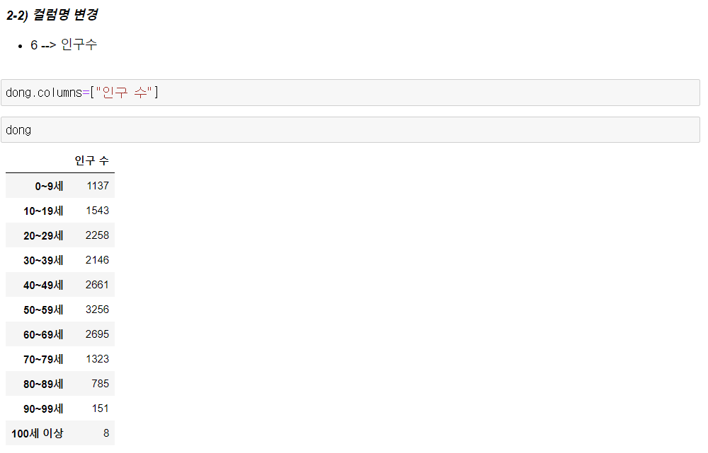 - 컬럼명 변경 : .columns