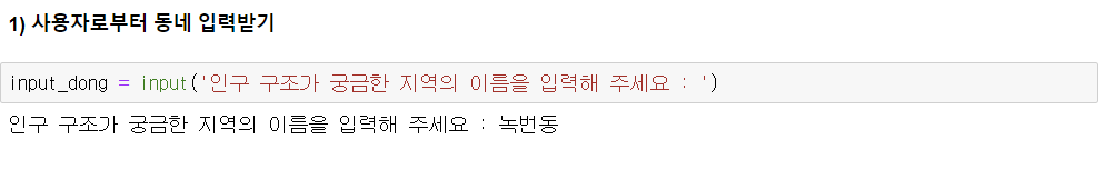 1) 사용자로부터 동네 입력받기