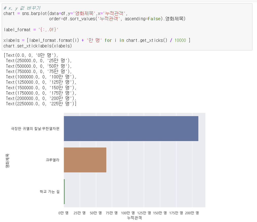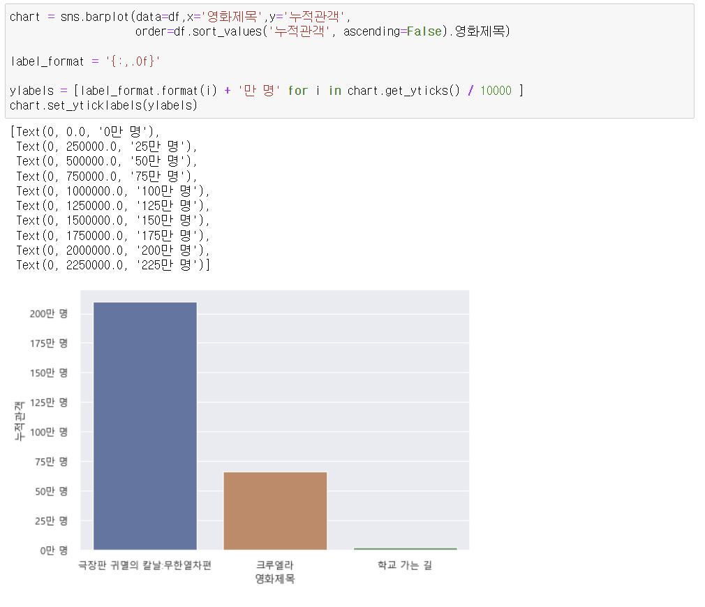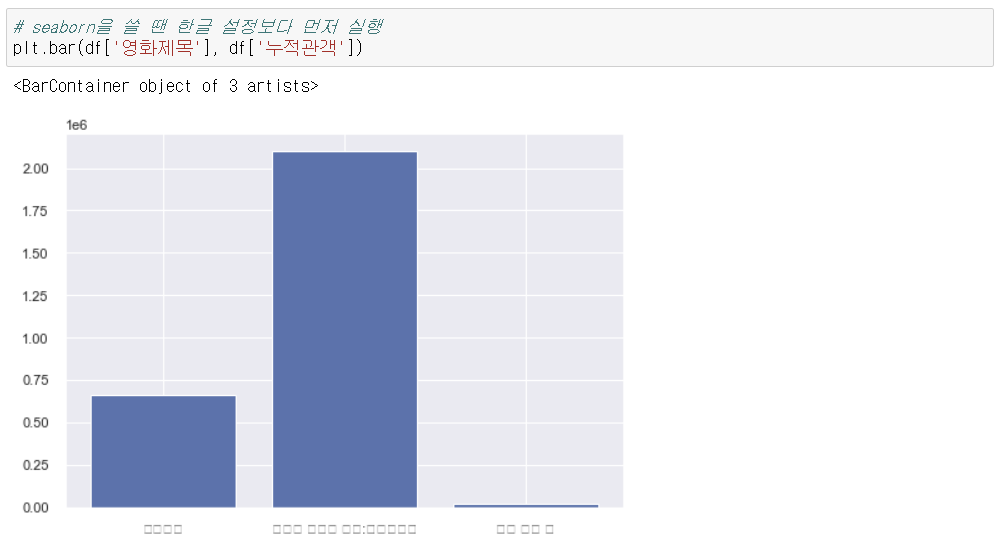 - seaborn 폰트 사용 - 한글처리보다 먼저 선언해야함