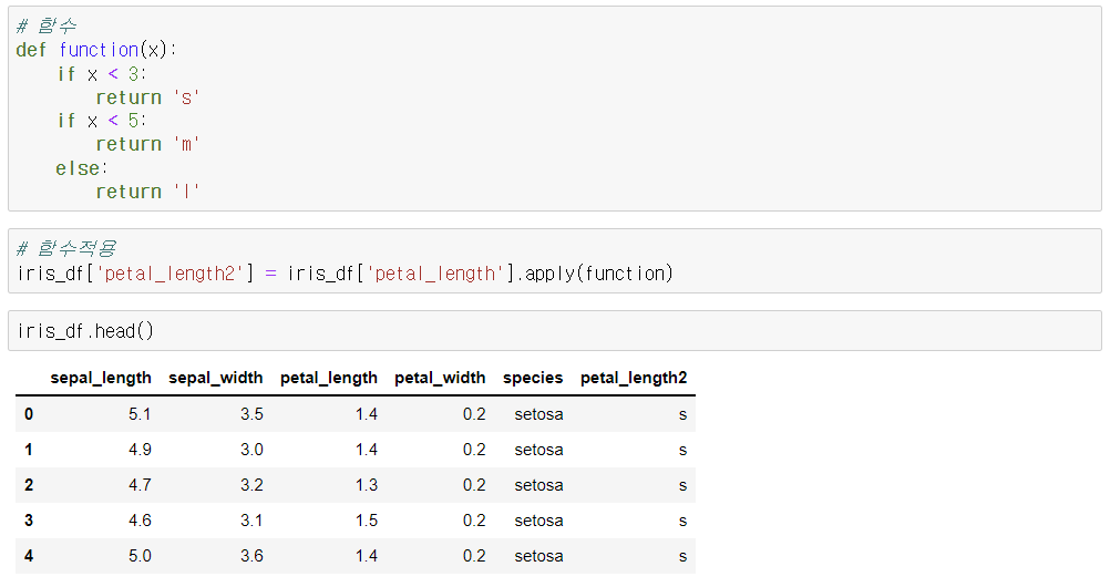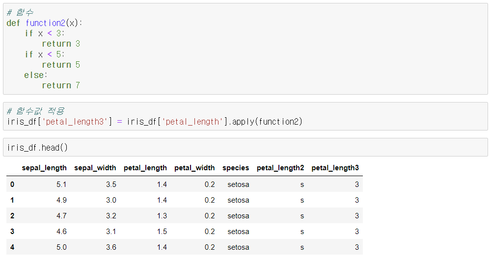 4) petal_length3 컬럼 생성(petal_length 값 이용)
