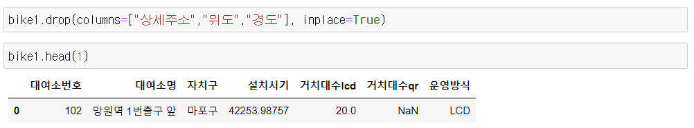 - bike_df2, bike1 대여소 번호 연결 ==> merge