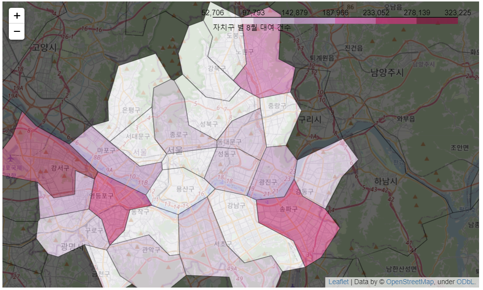 - 자치구별 대여 건수 집계