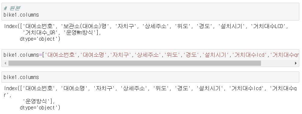 1) bike1 컬럼명 변경