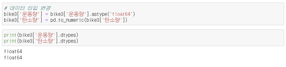 ② pd.to_numeric('변경할 컬럼) : 적절한 숫자 타입으로 변경