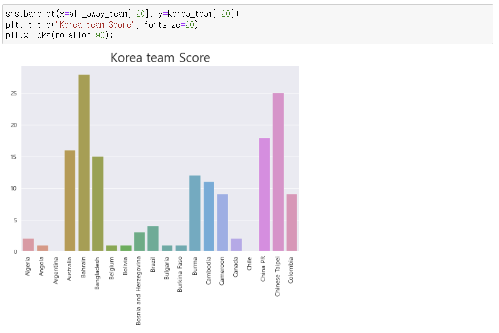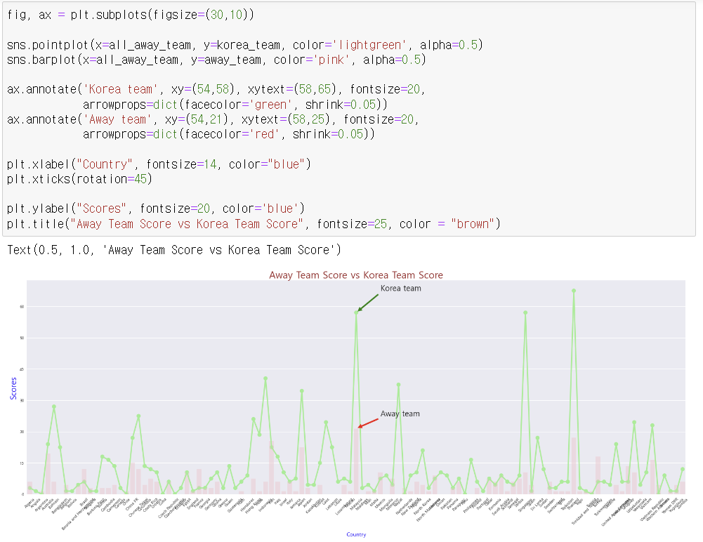 - 원정 팀 과 한국팀 점수 비교 시각화