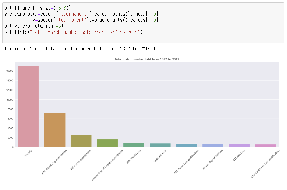 - 1872년 ~ 2019년까지 전세계에서 개최된 국제 축구 대회데이터