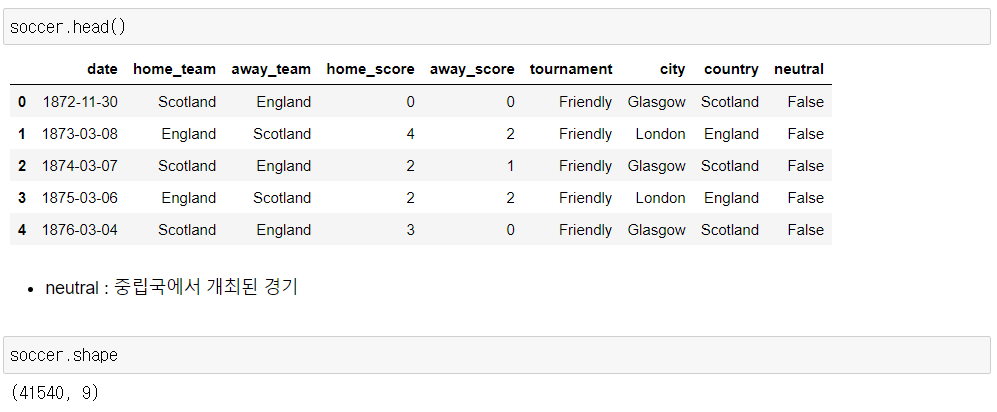 Python 데이터 분석(주피터노트북) - 국제 축구 경기 본문