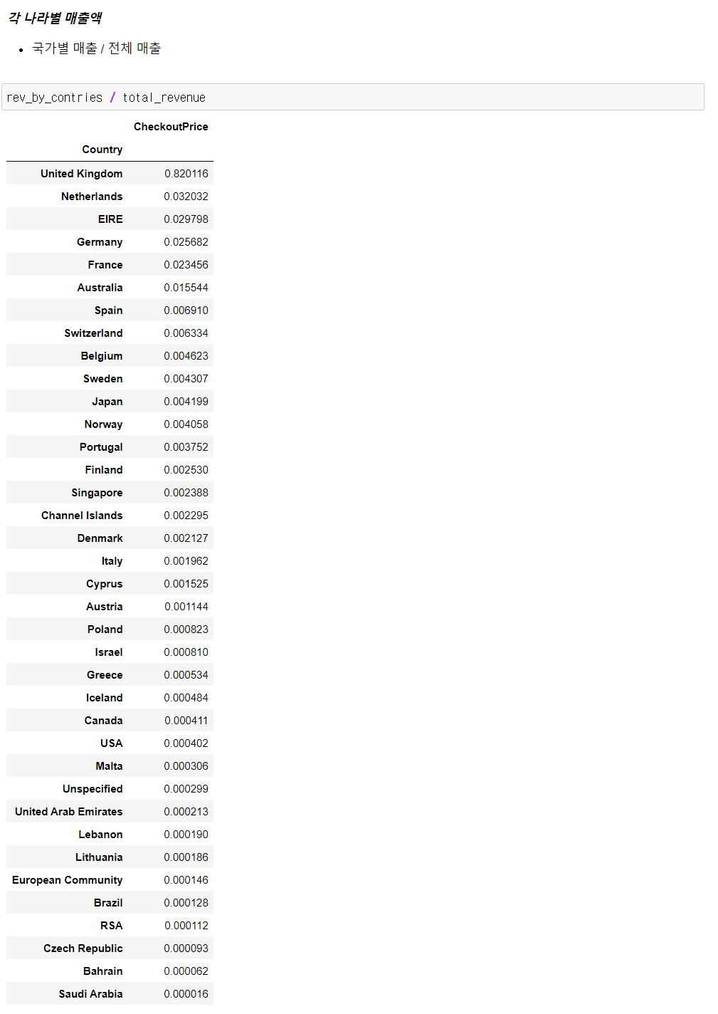 - 온라인 리테일 사이트의 2010/12 ~ 2011/12 주문 기록 데이터