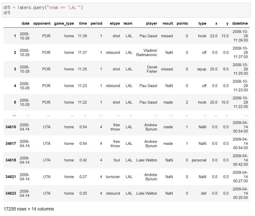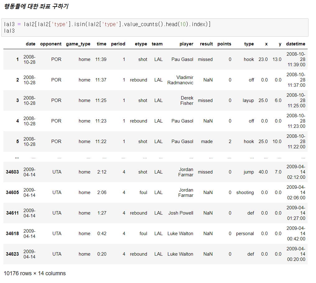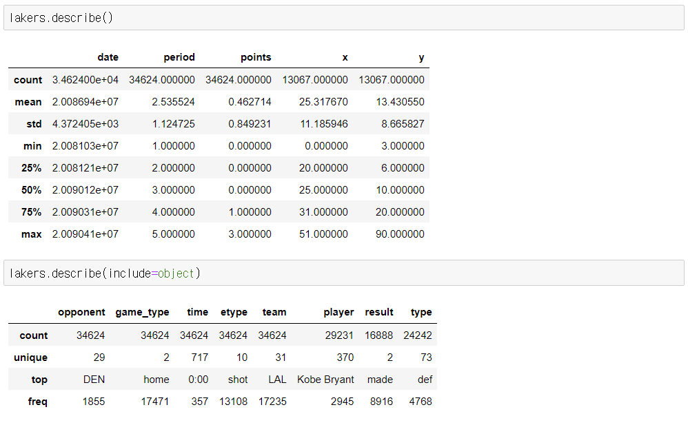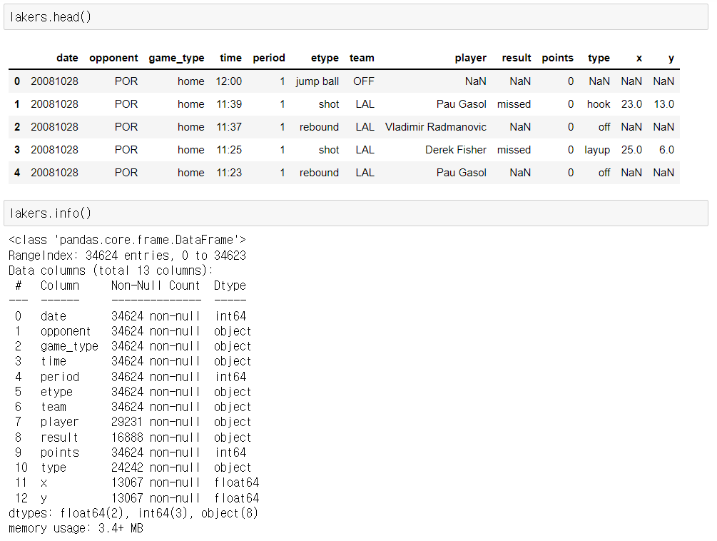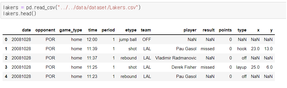 Python 데이터 분석(주피터노트북) - Lakers(농구) 본문
