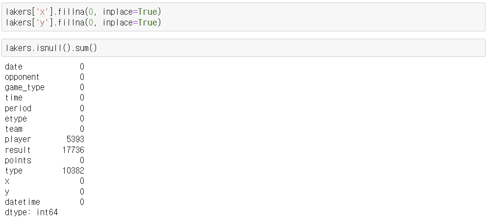 - x,y 컬럼에 NaN을 0으로 채우기
